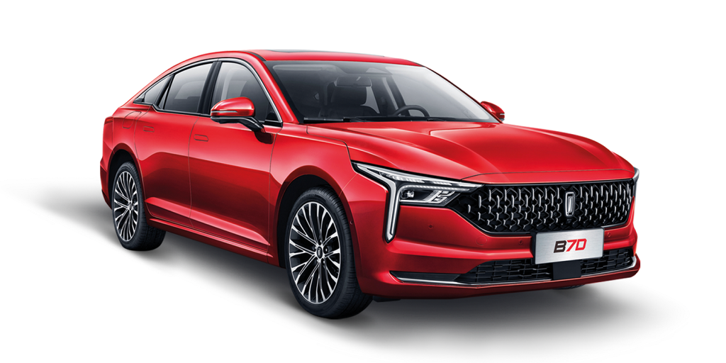 The B70 boasts a sloping roofline that lends it a coupe-like aesthetic, complemented by a straight waistline that accentuates the sedan’s streamlined look. Adding to its allure are the flush-mounted hidden door handles, which enhance the overall appeal of the Bestune B70.