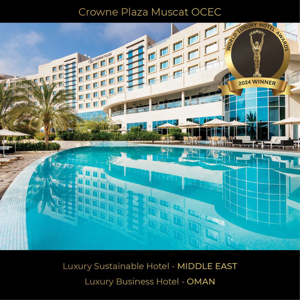 Crowne Plaza Muscat OCEC is proud to announce that it has been recognized with two prestigious titles at the World Luxury Hotel Awards 2024. The hotel has been awarded Luxury Business Hotel and Luxury Sustainable Hotel, underscoring its commitment to providing world-class hospitality while embracing sustainable practices.