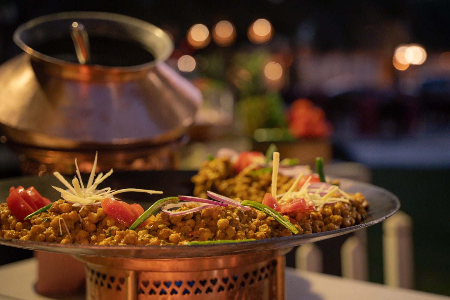 We let the subtle melody of the live band lead us to the Courtyard Restaurant and it was impossible to not surrender to the vibe of the evening as the glass doors opened in welcome. Whether a first-timer to this unique cuisine or a regular, the preparations are bound to leave you in awe every time. Walking to the table, you’ll be tempted to pause a couple of times to admire the kebabs being tossed, a pani-puri being filled, or a lassi being stirred. Made in traditional lagans and degchis, it’s as delightful to watch as it is to eat.