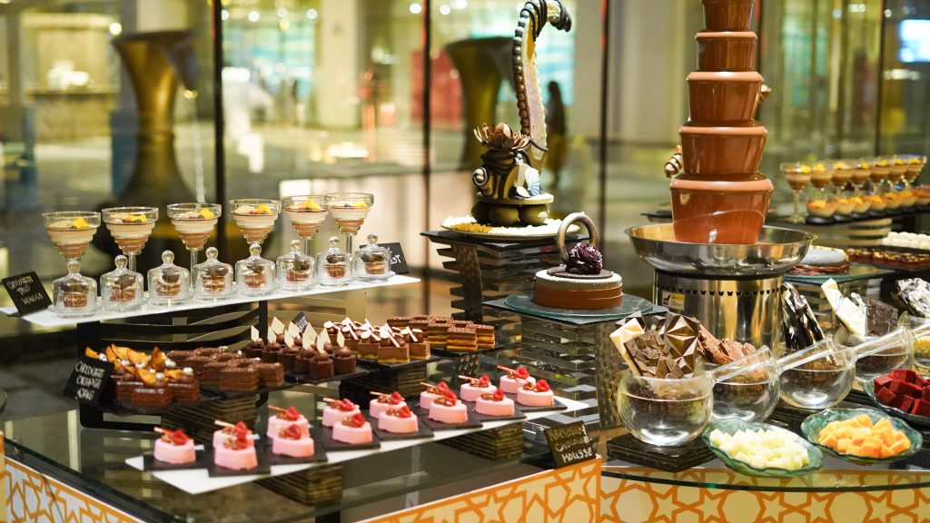 First introduced in 2024, Bait Al Shukolatah has become a favourite among Muscat’s dessert aficionados. The experience showcases an opulent spread of treats including Mississippi Mud Cake, Kunafa, Walnut Brownies, Nut Tarts, Fudge, Gateaux, Tortes, and this season with traditional, home-made Omani Halwa by the Hotel Pastry Chef Abdul Majeed. The soothing melodies of live Oudh music wrap guests in a cocoon of comfort, transforming the dessert buffet into a sensory experience of taste and tradition.