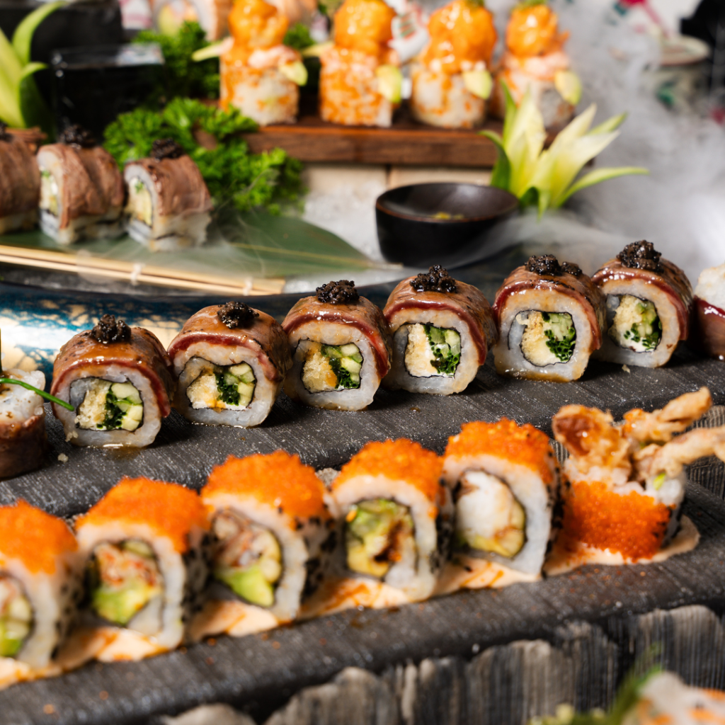 Unlimited Sushi: AED 145 pp with the option to add 3 beverages for AED 100 | Friday – Sunday | 7 PM – 11.30 PM