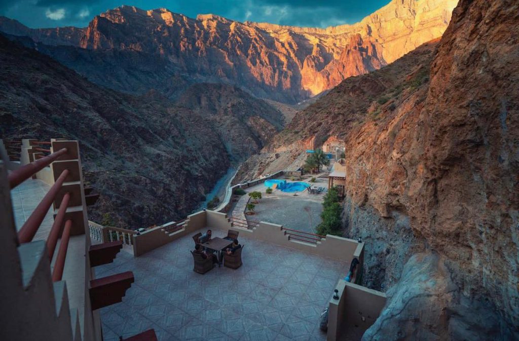 1) Shorfet al Alamin – Shorfet al Alamin, tucked away right in the middle of Jabal Sherqi, provides a getaway all year long. The hotel appeals to those wanting time in nature with its distinctively decorated suites. Located 25 kilometers from the renowned Al Hoota caves, up the mountain in Wilayat Al Hamra, which connects the Dakhliya and Batinah regions, this property provides a commanding view of the Hajar Mountains and its rugged, rock-strewn countryside while being encircled by unspoiled nature. Shorfet al Alamin provides a great place to stay at the top of the mountain, with a lovely view of the surrounding area and pleasant weather all year long. It is the perfect location to spend the summers because the temperature is around 25 degrees, and it is between 0 and 10 degrees in the winter.