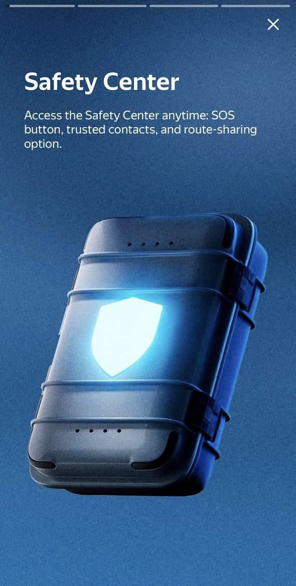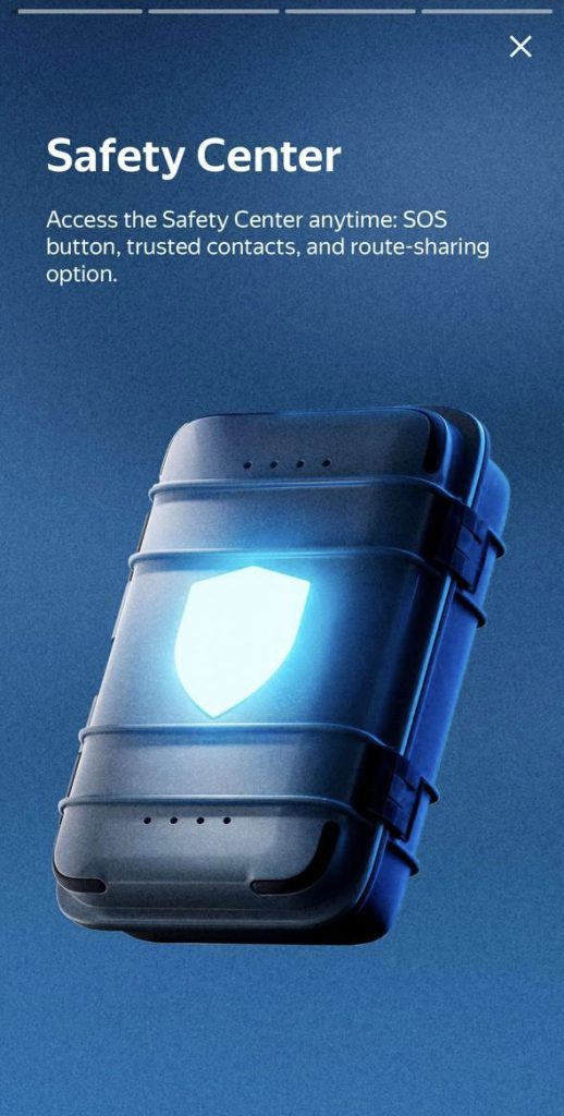 • Yango Ride integrates personalized safety checklists designed for passengers to see the status of implemented security measures during their rides.